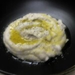 | 1 | 小さめのフライパンなどにオリーブオイル・薄力粉を入れ、火を点ける前によく混ぜ溶かす。 |